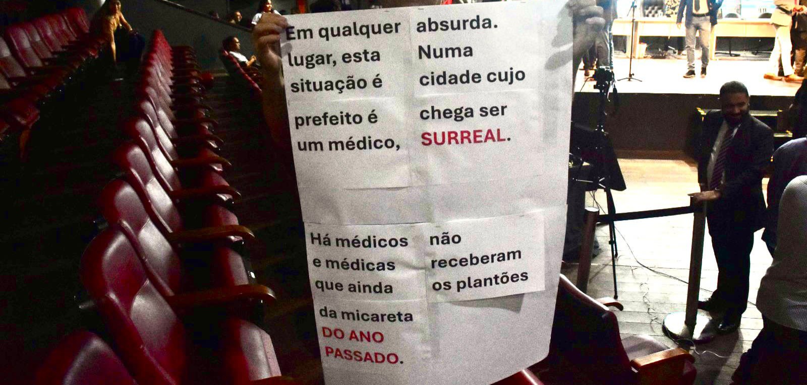 O cartaz apresentava o seguinte relato: “Em qualquer lugar, esta situação seria absurda. Numa cidade cujo prefeito é um médico, chega a ser surreal. Há médicos e médicas que ainda não receberam os plantões da Micareta do ano passado”. Contratada através de regime terceirizado para a Prefeitura, a filha dele decidiu deixar a função, pois ficava mais de 90 dias sem receber o salário.